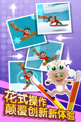 高速滑雪竞速类休闲游戏,融合动作操作与轻度对抗元素。单人模式侧重技巧挑战与关卡突破;双人联机模式支持实时雪球互击、屏幕翻转干扰等互动机制。内置自由视角拍照系统,支持动态构图保存高光时刻。