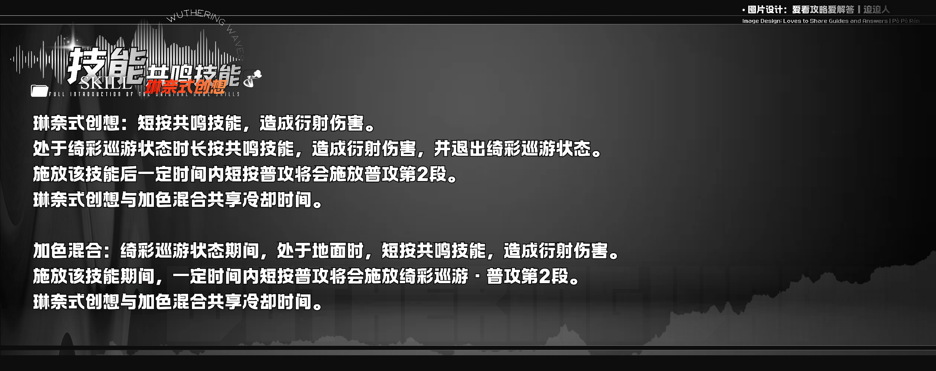 ■琳奈的共鸣解放:释放后全队伤害提升24%,可持续30秒,可在绮彩巡游状态下触发额外普攻,主要在于增伤能覆盖到全队。