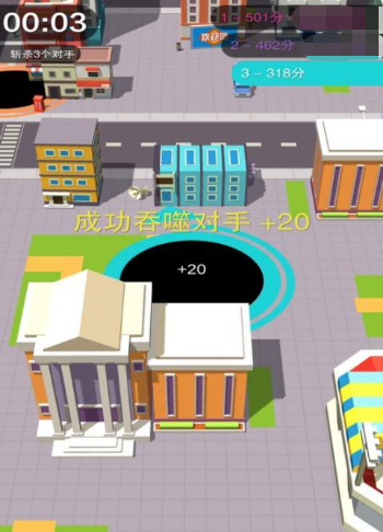 本作为3D视角下的休闲竞技手游,操作逻辑围绕黑洞特性展开:玩家滑动屏幕控制黑洞移动轨迹,吞并地图中各类物体实现体型增长。遵循严格尺寸压制规则——大型黑洞可吞噬小型目标,而小型黑洞仅能捕获更微小对象。不同物体提供差异化增益效果。除基础吞噬外,黑洞可释放毒液降低目标防御、污染区域延缓对手行动,并支持腐蚀加速等技能升级路径。玩法包含无尽模式、限时挑战及多人乱斗等多种结构。