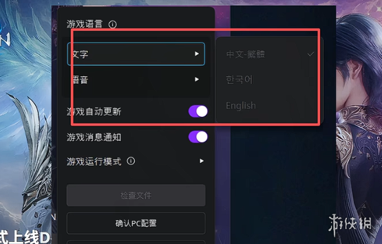 6、若未提前设置,进入游戏后会默认显示韩文,影响操作体验。
