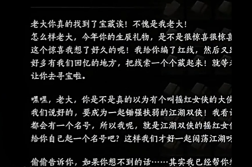 燕云十六声红线npc会让我们去找她丢失的红线,我们要根据线索去找藏宝图,每张藏宝图上都会有线索提示,顺藤摸瓜就可以找到线了。