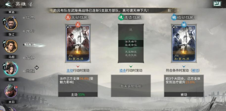【厉兵秣马】可以为自身和追击格上的连弩军提供护盾,提高生存能力。