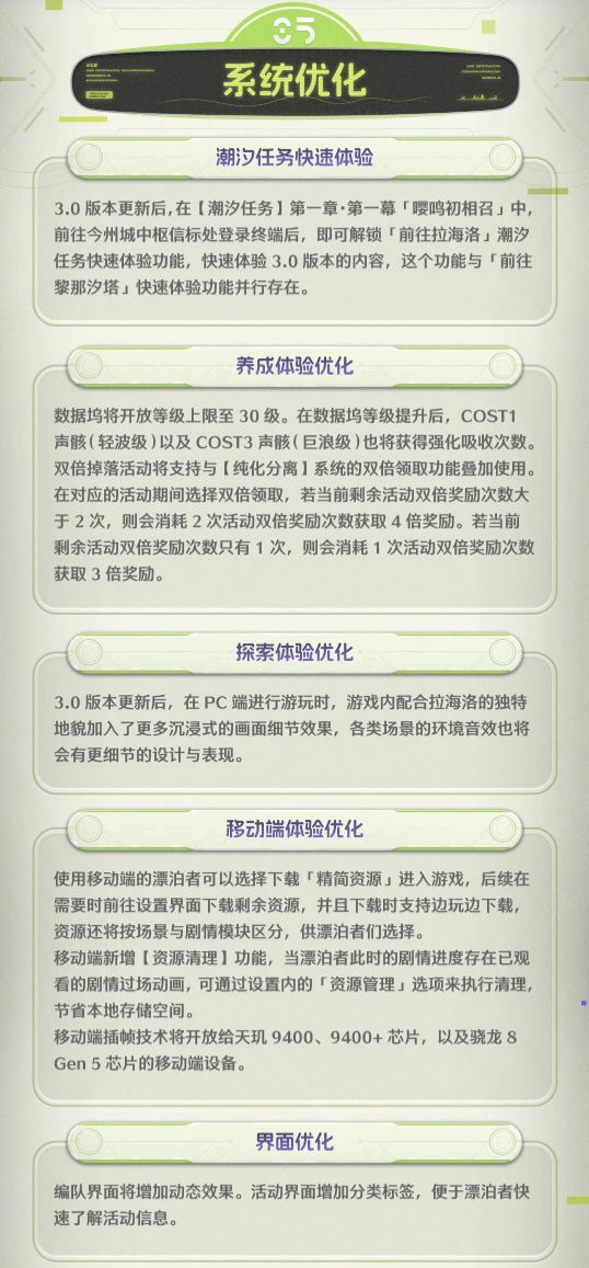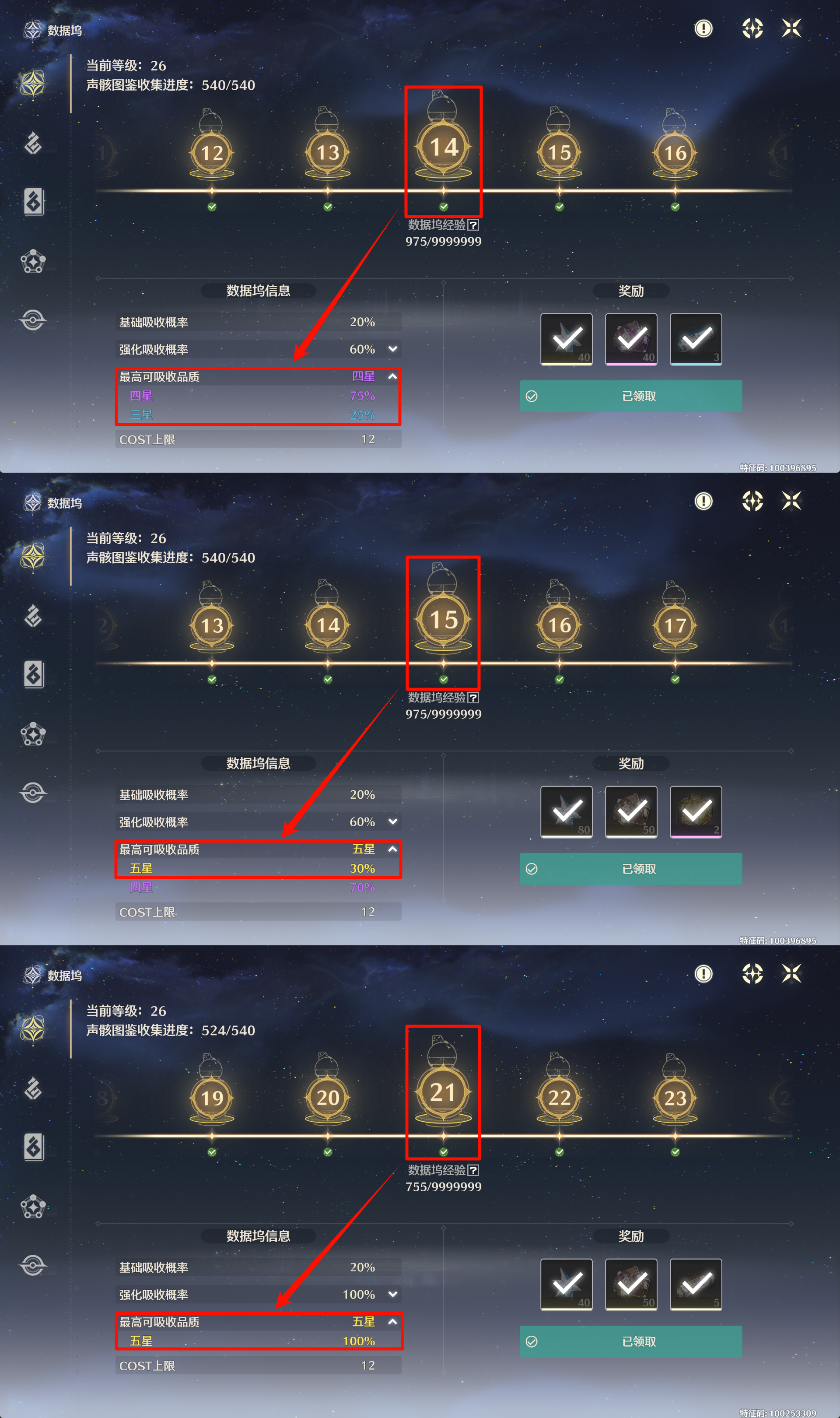 ③14级后:提升数据坞等级,这是后期获得高品质声骸的关键。