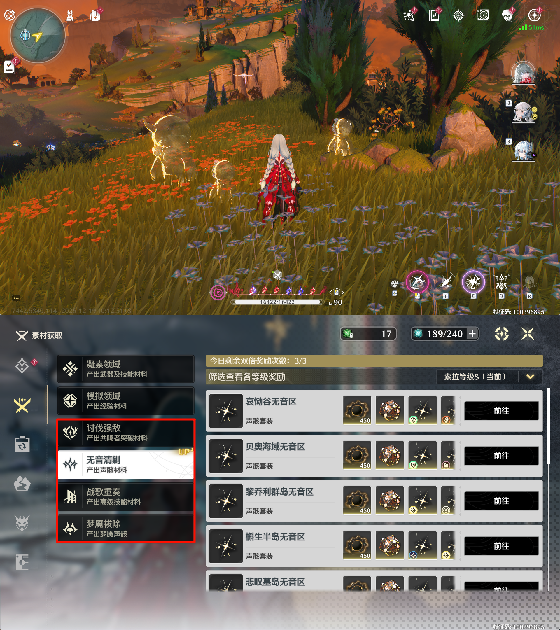 ④无音区:刷取地图上的无音区清剿会随机掉落属性声骸。