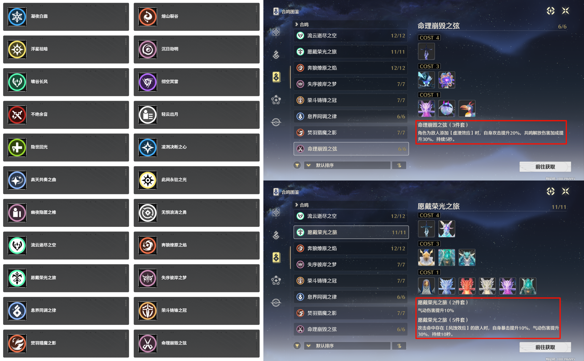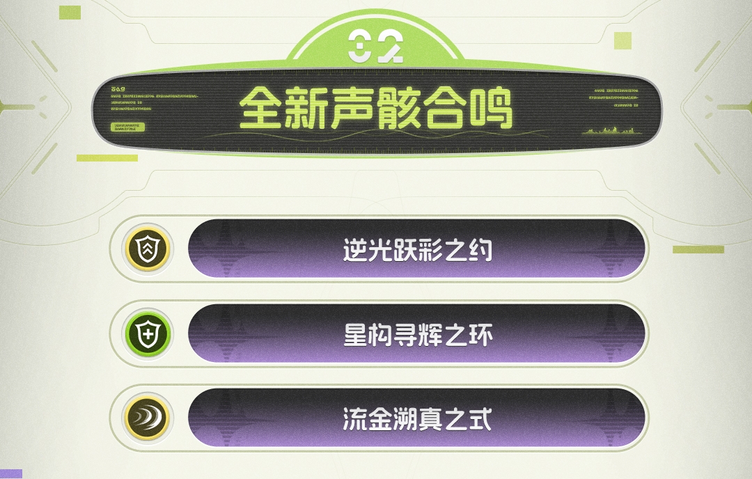 4.声骸合鸣套装:声骸可组成套装并触发 2件套/3件套/5件套 套装效果,不同角色拥有不同的套装搭配,视具体情况而定。
