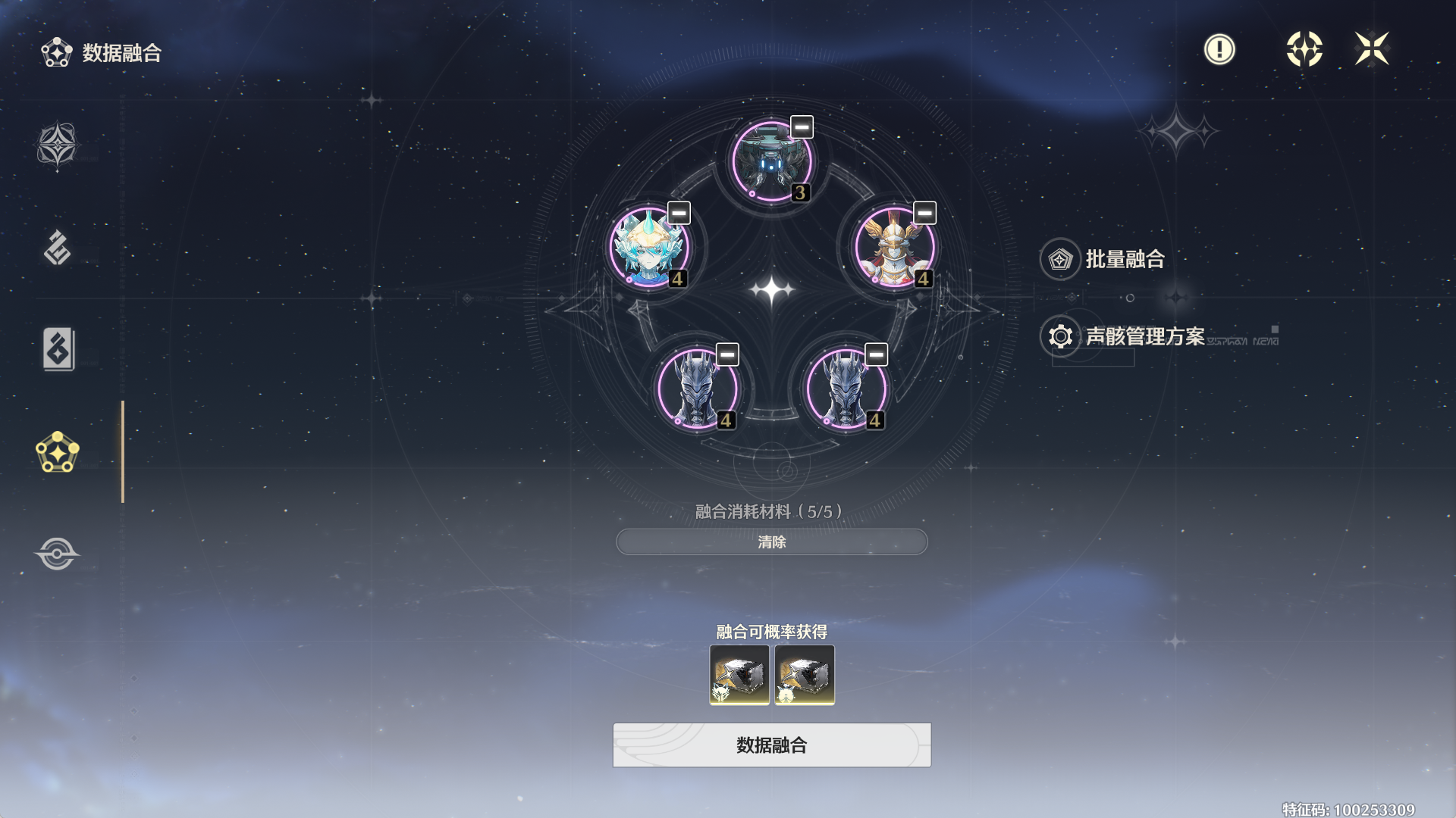 ③数据融合:终端可以将5个未强化过的声骸转化为1个随机新声骸,已强化过的声骸无法进行数据融合,装备中和被锁定的声骸不能被选为材料;数据融合无法获得未解锁的声骸,因此无法起到解锁图鉴的作用,只能是升级已经有的图鉴;产出的新声骸的品质由当前的数据坞等级决定,放入声骸的品质无关,提高数据坞等级可提高产出声骸的品质。