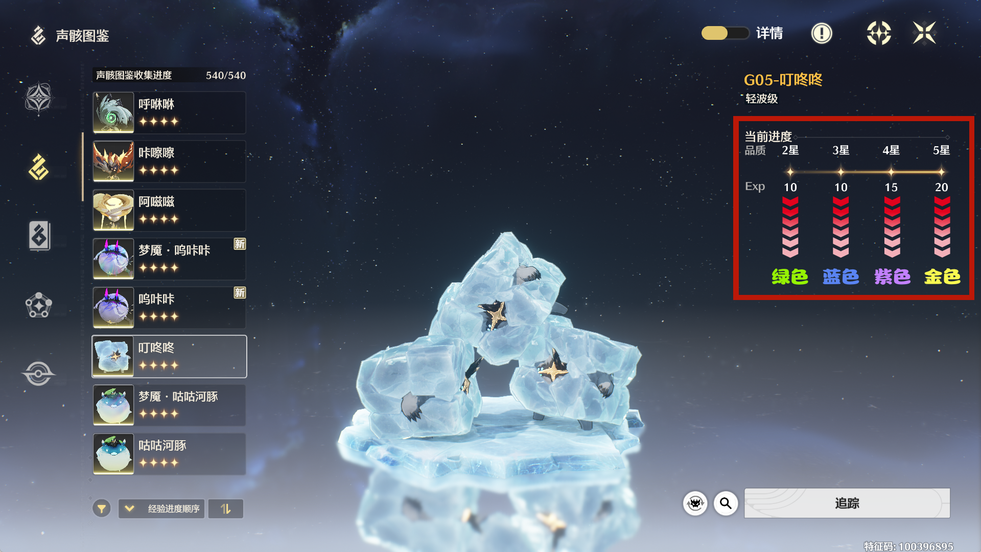 2.声骸品质:2、3、4、5星,分别为绿色,蓝色,紫色,金色;