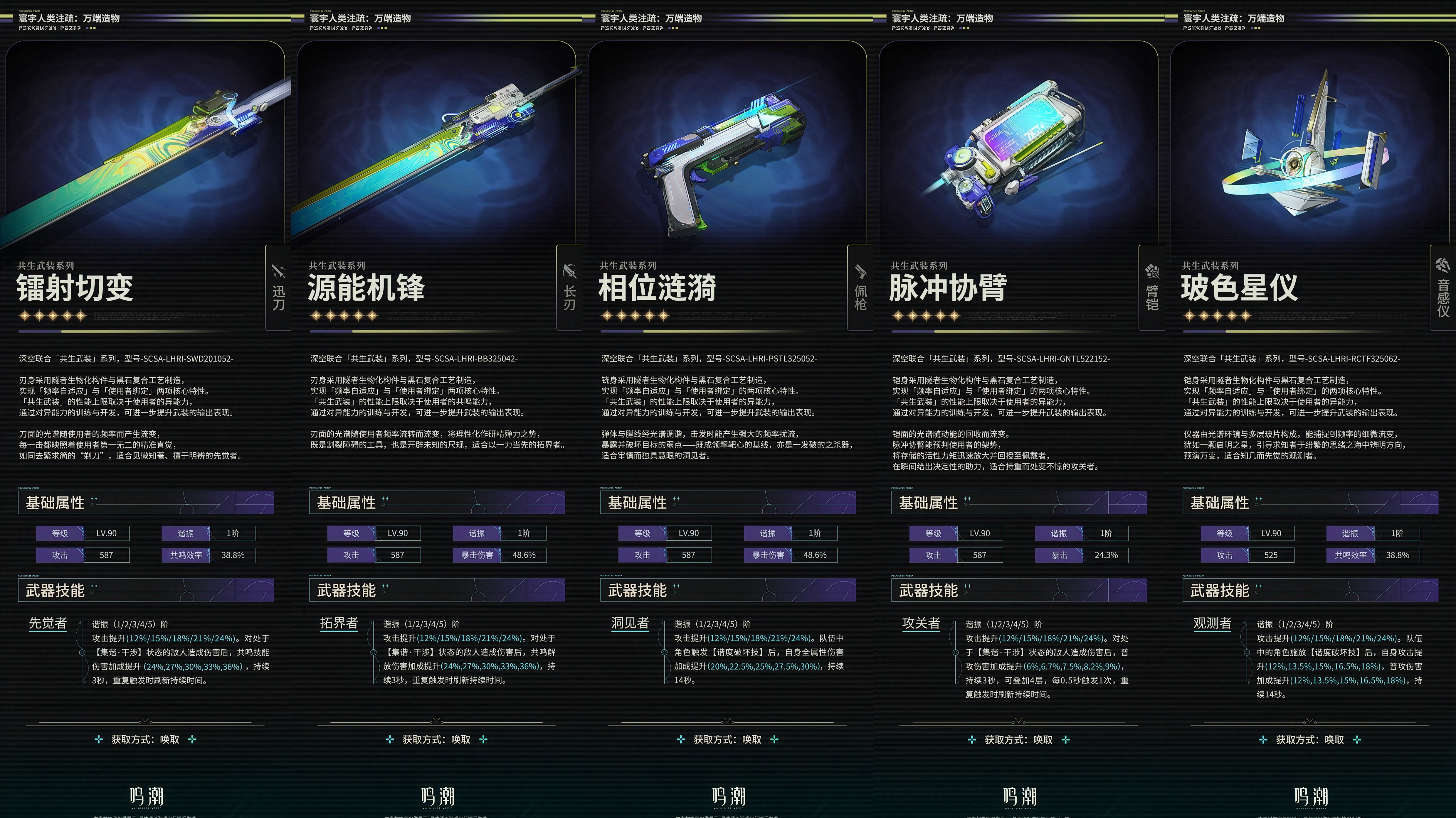 ④铸潮波纹:通过活动、商城礼包、先约电台(大月卡)、余波珊瑚/残振珊瑚兑换,仅可用于活动武器卡池及新旅武器卡池使用;