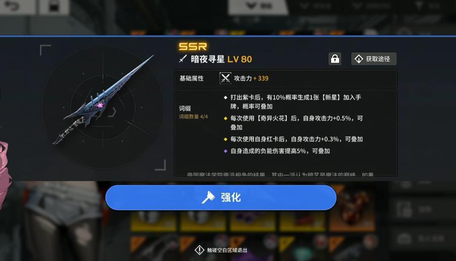 马吉拉星仪的武器可以选择暗夜寻星,特性是打出紫卡后有概率生成新星加入手牌,且词条可以洗出每次使用奇异火花加攻击。还可以选择外界星辰,效果是每当有一张超新星的衍生卡牌生成,就能给我方全体加攻击,获取方式为贡露城的15级声望奖励。还有一把推荐武器是活动里的凤凰尾羽,可以让队友来携带,能力是让我方使魔的伤害更高。在护甲方面推荐深红谶言,也可以用常见的高维构造体、模拟星辰。
