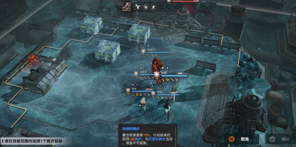 我方还能跟一些场景道具或者机关进行互动,目前一共有十种常见类型,合理运用机关和道具能有效提高体验,除此之外还存在一些地形属性,比如说电场、腐沼以及地热等,地形分为三种不同的类型,分别为敌方、我方和中立。站在敌方的地形上会获得各种其它对自身不利的状态,敌方站在我方地形上也会获得相应的debuff,因此在移动时需要稍微注意地形的变化。