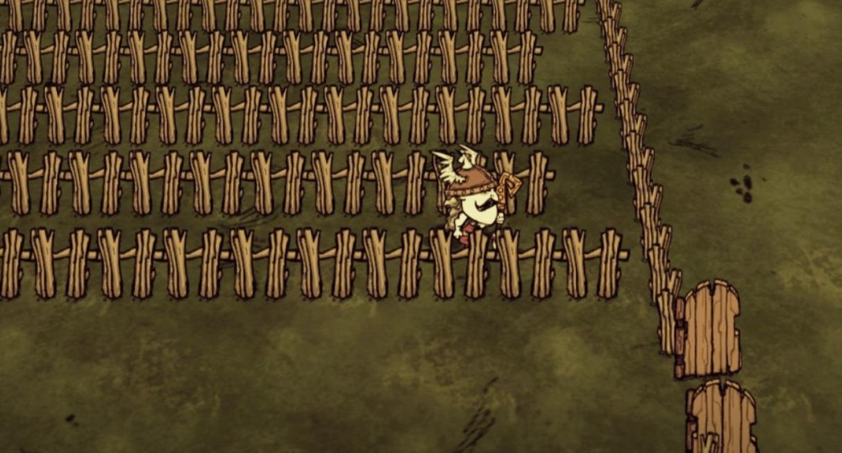 然后就可以在里面开始建造迷宫,从最外面开始选择空一个单位摆放栅栏,排放到另外一边,空一个可以方便角色走过去的位置。再往后面空一行继续摆放栅栏,直到与另外一边即将重合时,留下一个缺口就可以了。接着就交替放置栅栏,大约放置八排左右差不多,千万不要将最后的口子给封住。然后就可以用武器将蜂巢给敲掉,将蜂王给召唤出来,将小蜜蜂都引到迷宫里面。