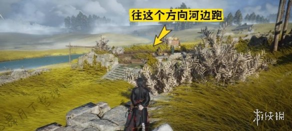 华奥道:站在河道边,面朝河对岸的第二个稻草人,调整位置与之对齐后做动作。