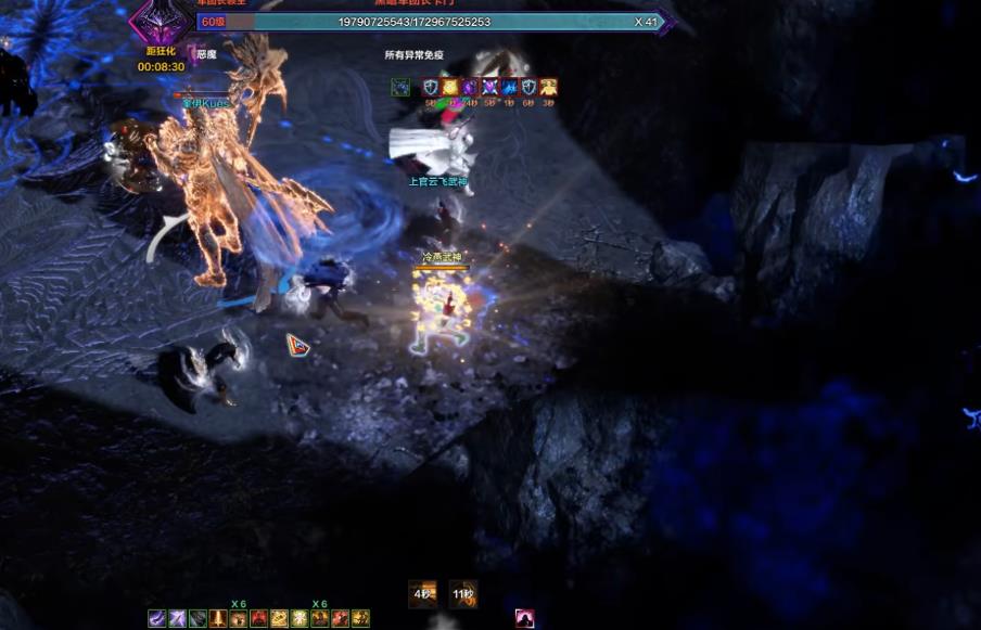 另外一个变种是在右砍加前刺捶地后会接一个后跳,如果其斧头上有蓝光则需要反制。在卡门周围会出现黑色旋风特效,需要去头前反制,等反制结束后会随机点名几人。其头上有宝剑标记,不用管标记长什么样子,迅速去地图外侧分散排火即可,排完火后不要站在黑气上并打瘫。卡门会在地上旋转着斧头,并生成几团黑圈,站在黑圈上便会开始叠加减益状态,等叠到三层会叛变。接着boss会锁定一人,对着该方向吹风,此时所有人找到他的头前方向,去地图外侧集合,防止该生物将我们吹到地上的黑圈内,等黑圈消失后结束动作可以回去打卡门。
