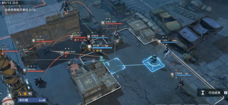 在站位上可露凯是输出核心,一般她的摩托撞到哪她就在哪躲掩体,米什缇和佩里提亚则要拉满移动,尽量跟上可露凯的节奏,米什缇凭借自身出色的减伤能力可以随意站硬抗伤害,而佩里提亚则需要借助掩体阻挡敌方火力避免暴毙。在尘烟前线中第四人可以按照每日buff进行挑选,比如有链式冰封时可以选索米,有重型穿透时首选玛绮朵,第五人一般会选波波沙来参与机制互动。在歧路挑战等四人BOSS战中,第四人选科谢尼娅作为治疗位,她能主动给可露凯和佩里提亚施加火热攻势,补上米什缇没提供的攻击力加成,让酸蚀队有更高伤害。