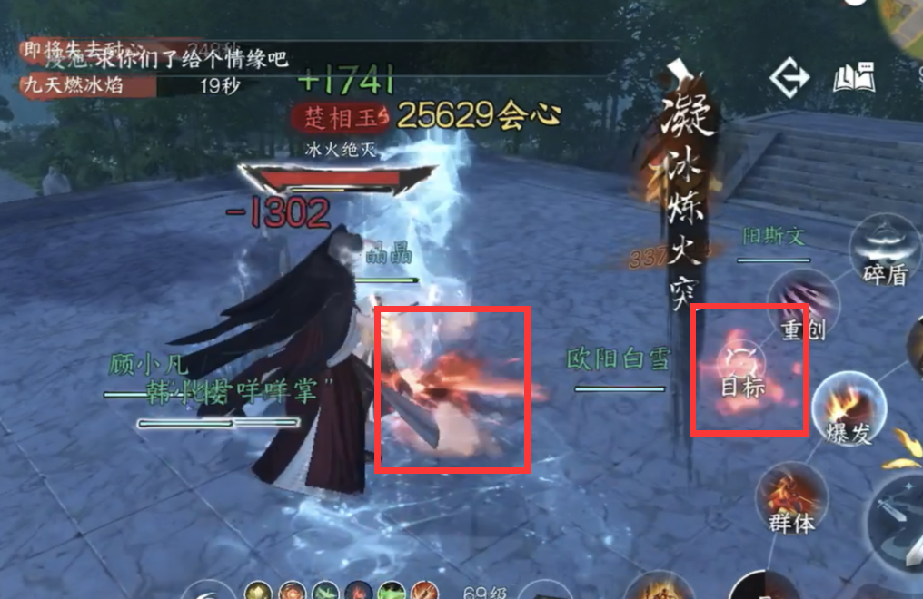 2.楚相玉释放暴风雪的时候,大家站在地上的火堆上即可躲避伤害!