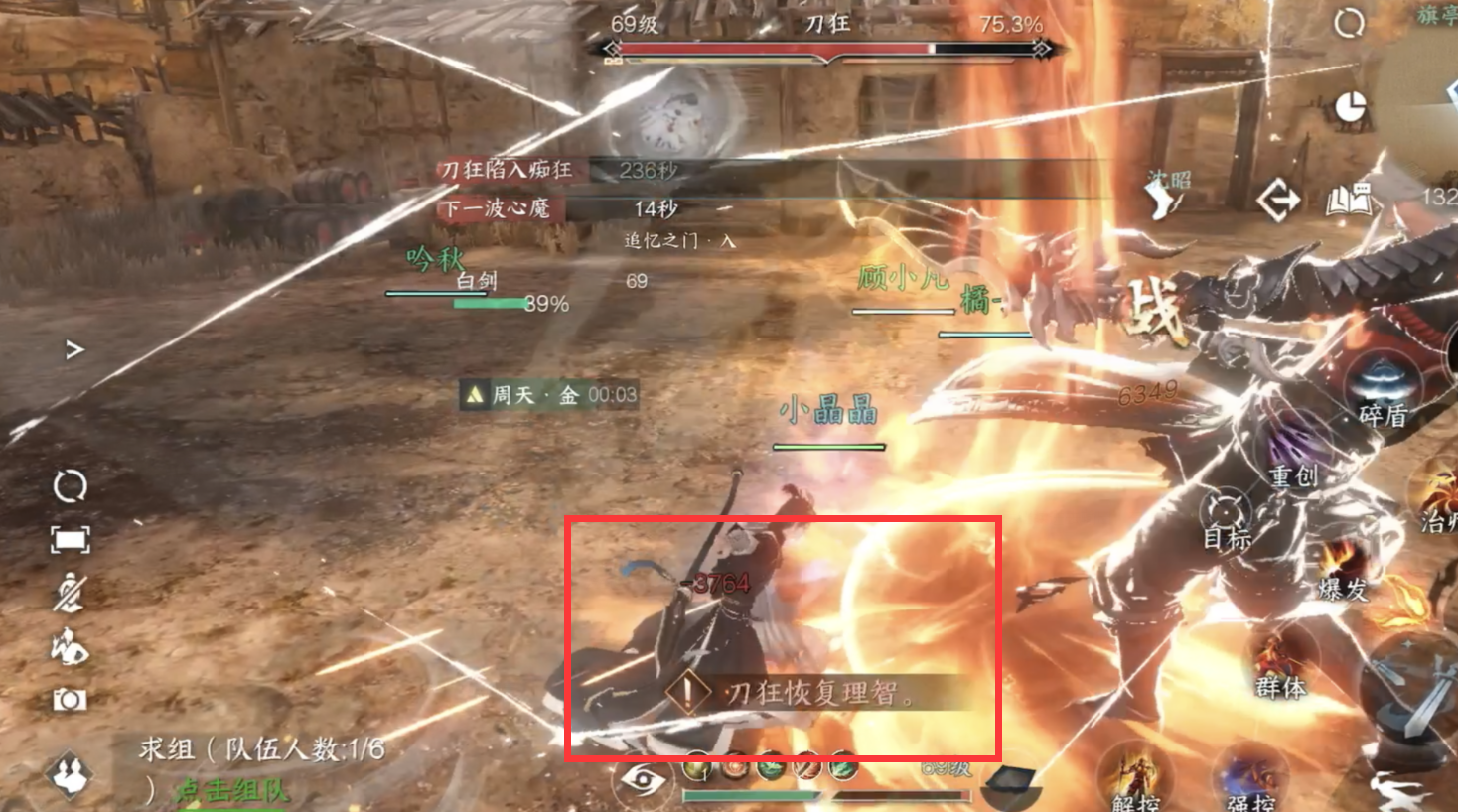 2.进入追忆之门优先打心魔痴,因为会持续扣白剑的血量!