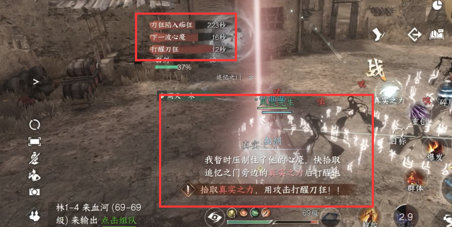 看到提示第一时间捡到真实之刃,出来后打一下刀狂即可让刀狂恢复理智,然后继续进去输出,有提示再出来即可,遛刀狂的不能进去哦~