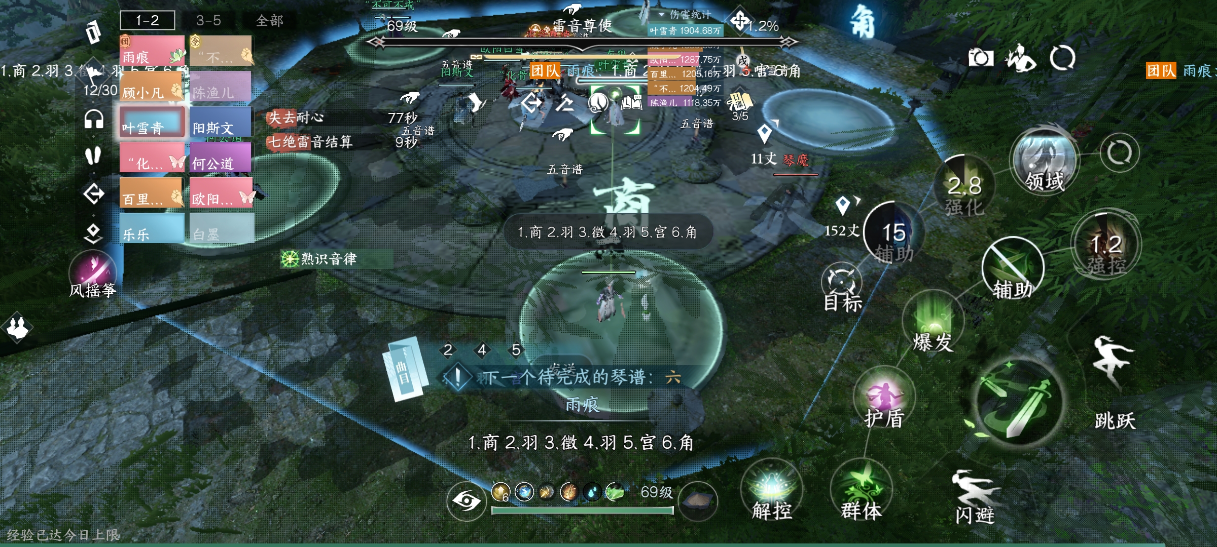 2.雷音打本,第一次音谱出,优化一次ai,自断筋脉刷新出师姐,紧接着打红袖,直接挂风筝,手机扔一边,一会儿后团灭,在挂风筝打一次团没,第三次挂风筝手动点击小怪击败顺序,解救跳舞顺序,通关后,转雷音,第一次站谱子时打掉40%血!!?(解释一下,英雄本6万战力根本做不到这点,相当于1/4时间打掉将近一半血,)