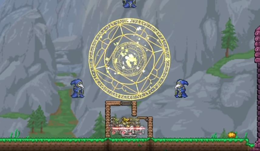 但是在第二层是可以的,而教徒在攻击过程中是无法移动的,此时玩家就可以趁机上到第二层铁轨去攻击教徒。等到教徒即将开始下一轮攻击前,返回到第一层的铁轨,这样就能始终将教徒控制在我们能打到的位置。而我们用实体方块包围住自身,此时教徒大部分攻击都无法打到我们,玩家便能无伤将其解决掉。不过该怪物还会召唤出分身,分身要是不及时处理,便会导致本体位置发生改变,需要赶紧将分身解决掉。
