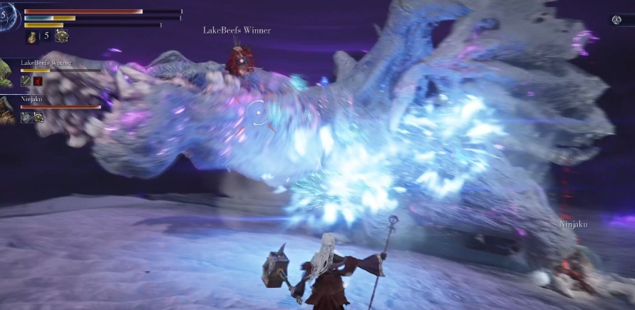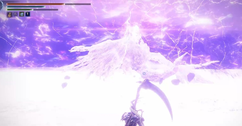 如果被咬中会触发出血效果,血量较低的话可能会直接阵亡,而且它后续的攻击会暂时进入强化状态。战斗中它会飞向天空然后下降并猛击地面造成多次闪电爆发,它习惯两次抓取指向同一个玩家,因此在第一个抓取被躲开后,要立刻准备应对下一个抓取,对于碎身巨颚释放的闪电钻地猛攻,如果处于半径范围内最好躲避猛击并跳起,避免爆炸造成闪电伤害。