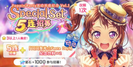 为纪念Poppin'Party主题活动开启,12月3日起,游戏内将开启「Poppin'Party活动开启纪念 Vol.1 Special Set 5连招募」。