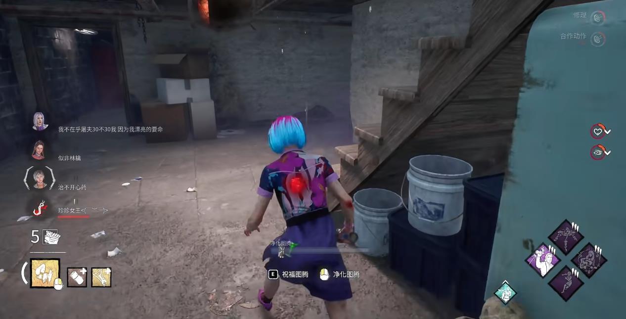 颤栗则是能在自身抓起或抱起逃生者时,封锁其他未被修理中的发电机16秒,被封锁的发电机会显现白色气场,打乱他们的修机节奏。隐匿追踪会让一个逃生者成为血祭品,把血祭品挂起时叠加一层令牌,最多可叠加4层。追逐时每持有一个令牌,心跳范围就减少4米,救助钩上血祭品的逃生者会成为新的血祭品。