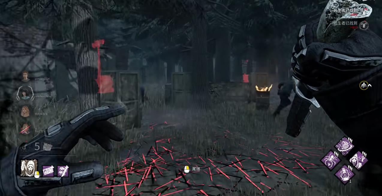 夜幕降临是鬼面的核心能力,玩家只要按下力量键就能进入夜幕状态,此时无论是站立还是蹲下,都将处于无法侦测状态,没有心跳和红光,这让他能悄无声息地接近逃生者。在夜幕状态下再次按下力量键,所有未被障碍物遮挡且暴露在视野中的逃生者都会显示白色轮廓,通过持续盯着白色轮廓,就能不断累计标记进度,当观察进度完整后,该逃生者将会进入持续45秒的危险状态。
