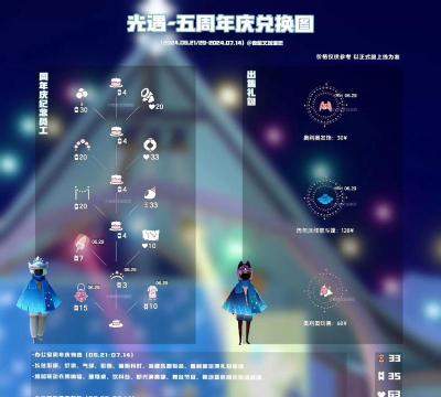 光·遇五周年庆星星代币7.14(今天活动最后一天)如下: