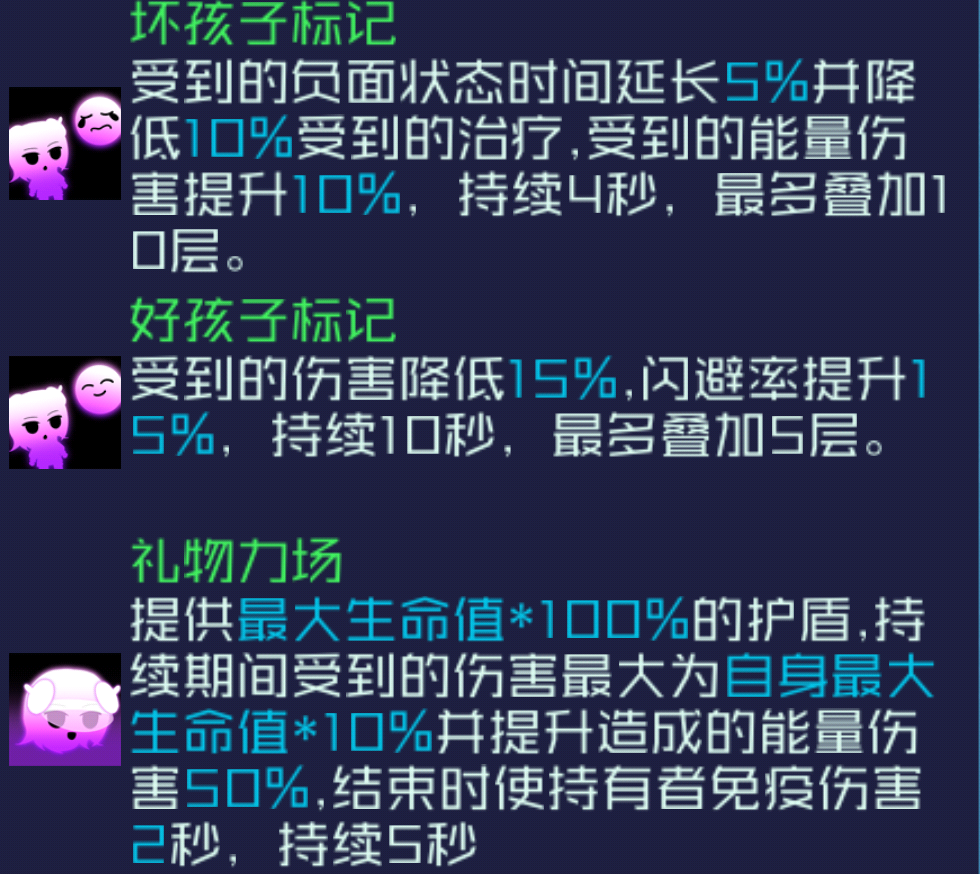 小技能清除高级增益,这个目前基本没有能清的高级增益。奥义可清除敌方能量,给己方回能回血免控。