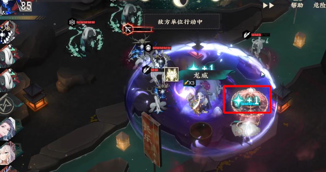 真珠宝幢的基础速度为150,在进入战斗时会触发被动三七宝生辉,并让自己获得一点能量与一层附加移动力。首次行动时一般会直接释放绝技蟠龙护持,但如果敌方距离较远不会立刻接战的话,也可先用职业技度灭苦厄进入一回合援护状态,等下回合距离拉近之后再释放蟠龙护持。该技能有三回合冷却,每间隔两回合可释放一次,释放需要消耗四点能量。使用后获得持续两回合的舍利状态,并通过被动三七宝生辉的二效果获得持续一回合的援护。