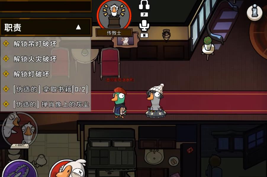 而传教士的缺点就是不能钻雾、不能钻管道、不能钻柜子等,模仿者就可以利用此特点来冒充传教士去迷惑鸭子并引诱鸭子上当。传教士大多属于辅助型压制,他并没有像忍者一杀多个,或者专业杀手隐藏尸体的强大能力,所以想要开刀还是比较难。该职业还能利用直接的特性,配合大祭司或者刺客来猜模仿者,或者猜出其他的角色,再将把信息透露给刺客,让其在会议上直接狙击掉人。