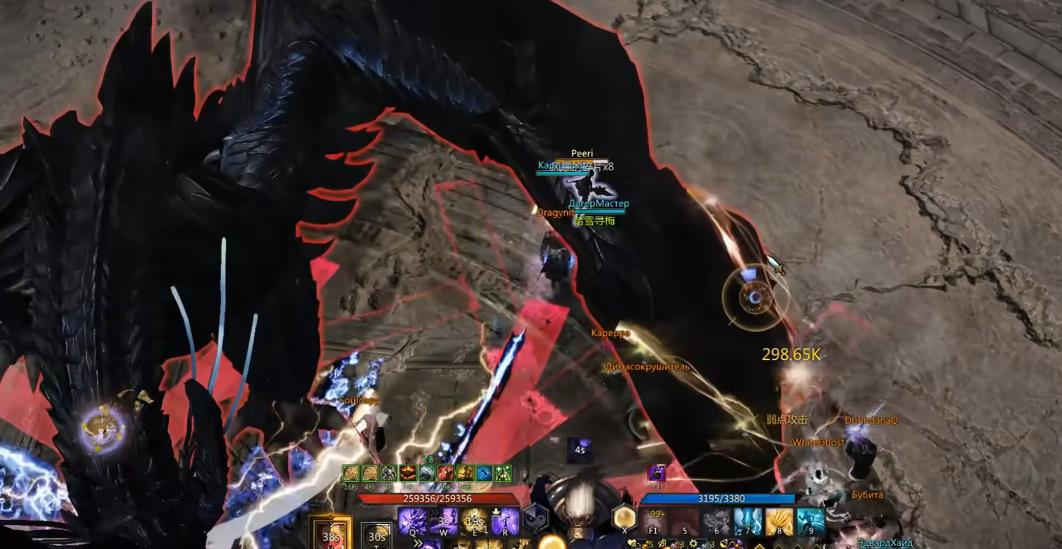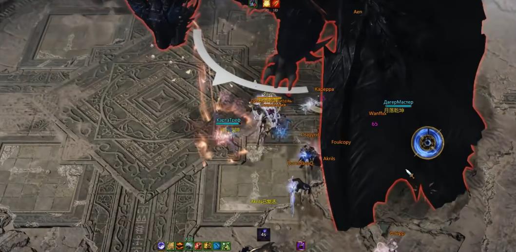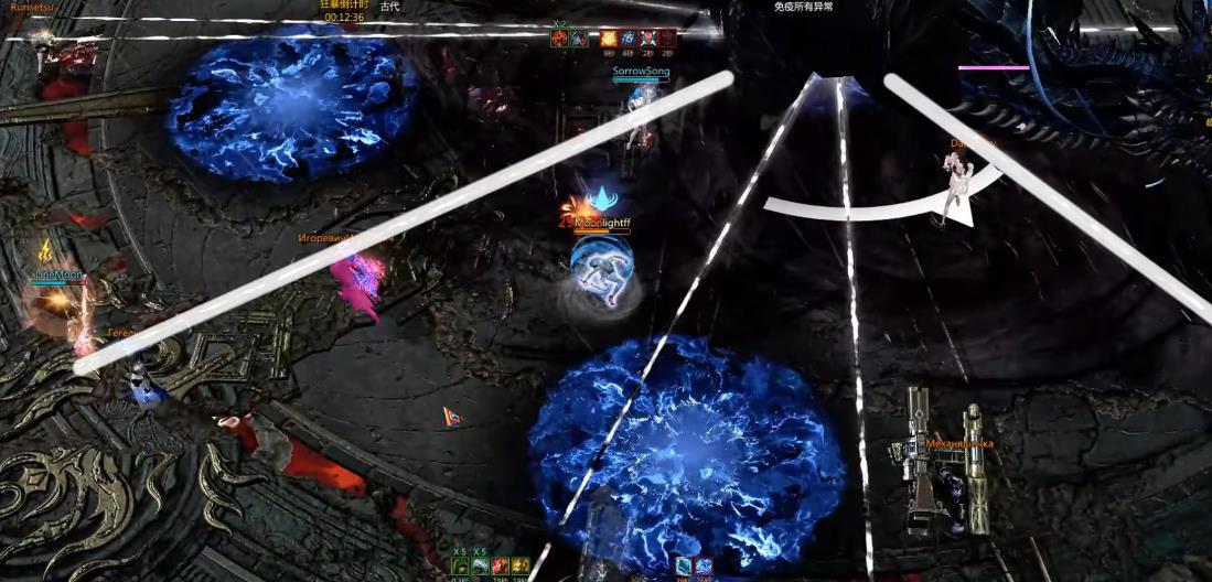 在挑战的过程中贝希摩斯会扇翅膀消失,在外侧会出现危险区,提示所有人在地图中间集合,接着会提示几轮环形警示区,这里无脑的打法就是治疗直接原地释放大招或者开觉醒回血,其他所有人不要在意血量,直接硬顶即可,注意最后的扇形收尾攻击就行。整个副本boss的小技能不多,并且大部分技能都有明显的地板提示,开荒一遍通关的难度不大。