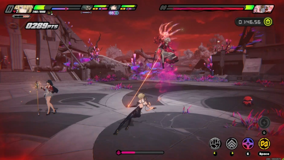 冲刺攻击专属于绿色模式,一段时间后秽息司祭会进行颜色切换,切换到红色后它会召唤地波,延迟后造成伤害,这个没有闪光提示需要玩家目押进行躲避。保持战斗一段时间后它会再次切换颜色,切换到紫色后秽息司祭会使用高频黄闪攻击,在它黄闪攻击期间弹反变成无消耗,最少接住七次以上弹反能对它造成部位破坏的额外伤害,同时让其陷入虚弱状态。注意观察秽息司祭切换颜色,出现紫色后最好立刻准备接弹反,只需要不停按下切换人物的按键就可以,配队尽量不要搭配远程角色,这样会进入极限视域拉开距离。