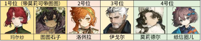 1、阵容:伊戈尔+莫莉德尔/信纸圈儿+洛佩拉+玛尔纱/图图石子