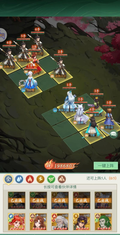 赵灵儿·祈雨放7号位,灵儿本阵容第二个群攻伙伴,绝技“风雪冰天”造成高额的群体伤害,同时造成当前精力3%的绝对伤害,被动“祈雨”进一步提高自身11.2%暴击率以及20%的仙术伤害,最高叠加2层,放在7号位确保自身状态达到最高值(精力高于55%吃满自身增益被动“灵风追击”进一步提高自身21%的仙术伤害)最大化对场上剩余武林人士造成伤害。