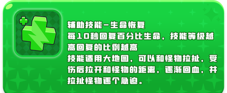 技能适用大地图,可以和怪物拉扯,受伤后拉开和怪物的距离,逐渐回血,并拉扯怪物逐个急迫。