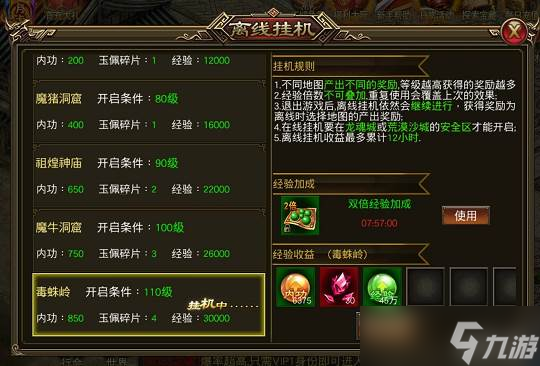3、退出游戏后,离线挂机依然会继续进行,获得奖励为离线时选择地图的产出奖励;