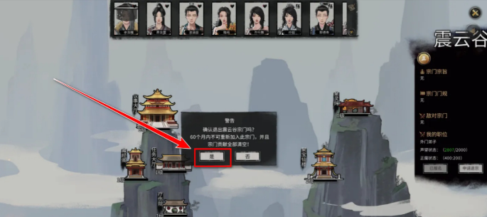 冷却时间:退出后60个月内(游戏内时间)不可重新加入同一宗门。