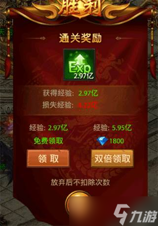 4、玩家可选择奖励倍数,双倍领取会消耗钻石,放弃领取奖励不扣次数。