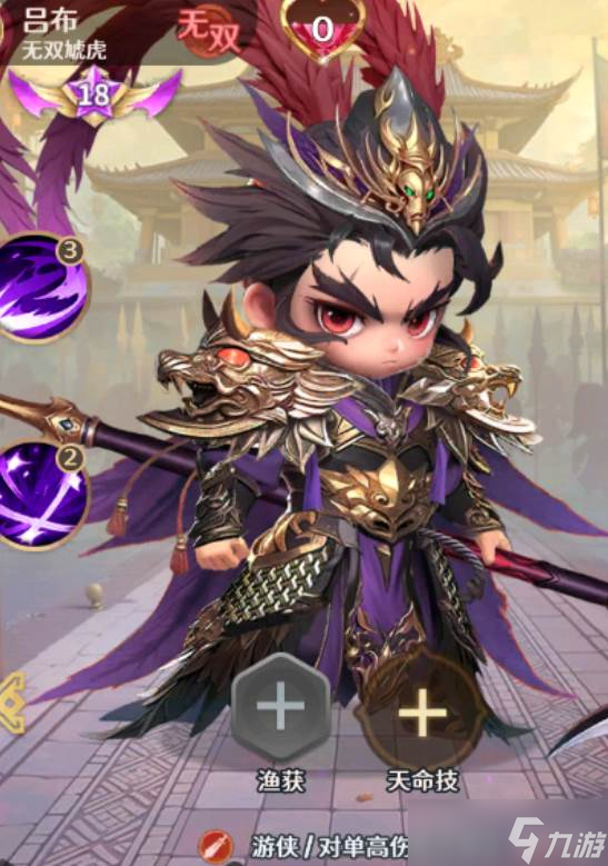 角色还有一个名叫无双飞将的技能,对方有一名成员死亡,玩家就能恢复8%的生命值,一技能触发伤害之后还会再次攻击生命值低于10的对手,这个技能的被动效果就是,可以在每一次攻击之后提升角色15的防御能力和事物的攻击能力,最多可以叠加10层,要想获得吕布的话就可以去求贤阁抽取,作为一个游侠角色,搭配起来是比较万能的,可以和张飞,马超这样的战斗角色搭配,你可以和孙尚香或者吕玲绮搭配。