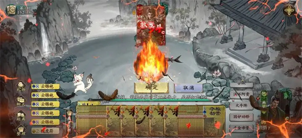 装备一击制敌化(推荐完成):田单"火牛阵"不断添加装备只留下云锦袍+羽扇/开山斧(会一直询问是否发动)/董仲舒"春秋繁露"控顶复制红桃3羽扇。保证你一击能打15血左右即可后续所有关卡先发即通关。
