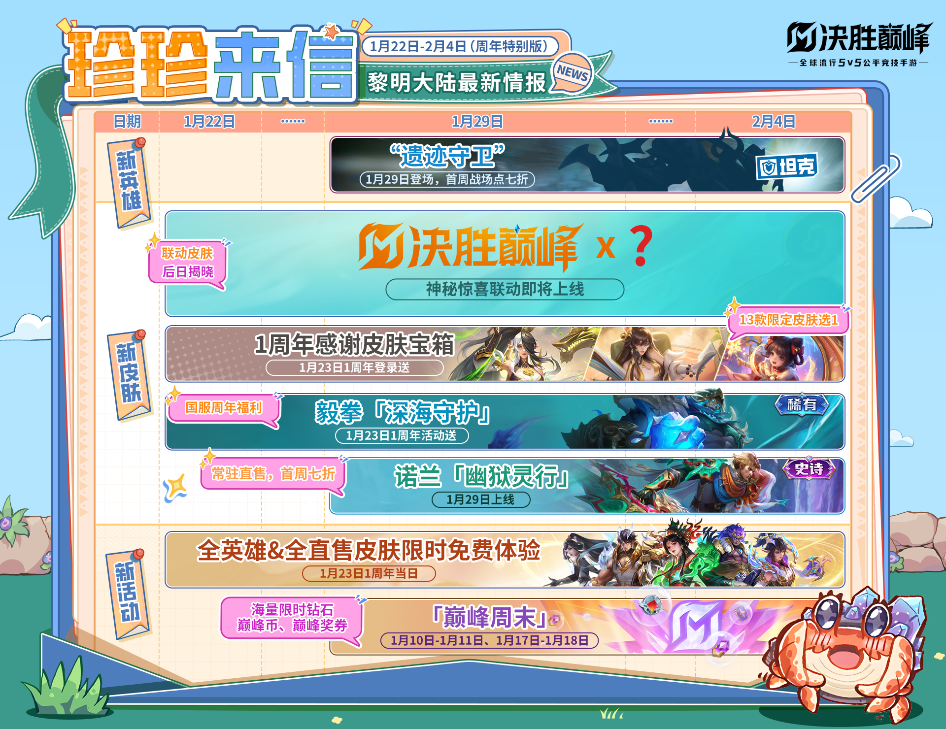 娜娜的好朋友——珍珍来噜!S5赛季现已开启,决胜巅峰1周年的期间会有哪些全新内容与各位友友见面呢?不急不急,让珍珍来为你慢慢道来吧~