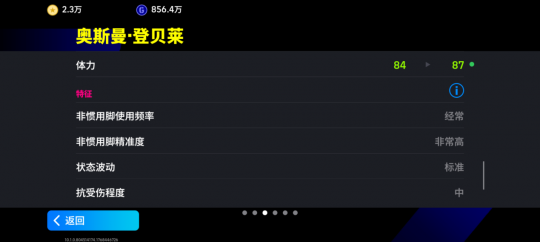 登贝莱增能属性为【敏捷 +3】