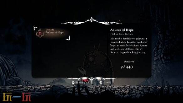 在《空洞骑士丝之歌》中,「希望丰碑」是骸底镇许愿,在第二幕开始时发布的捐赠任务,需再次向营地捐赠440个壳之碎片以改善其条件,完成后营地里会有完整大黄蜂雕像。