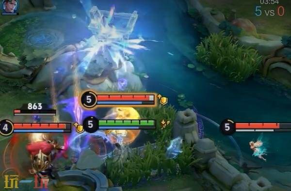 利用一技能对敌方造成击退控制或周期性为友方提供治疗和爆发加速,大禹可灵活放置一技能,既可对敌释放,造成击退与减速,也可置于安全位置,为队友提供持续的回复和加速