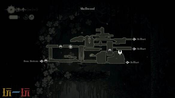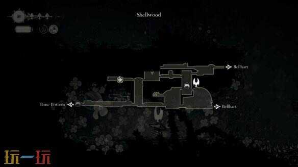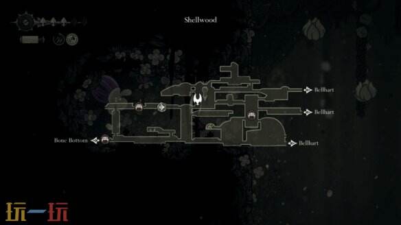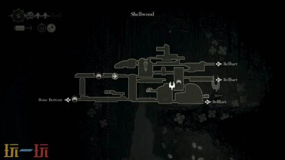 从中央长椅向右攀登,进入首个通往钟心镇的右侧通道。跳下通道内的平台,留意周围墙壁,找到脆弱墙壁后将其破坏,隐藏区域内即可发现花芯果实。