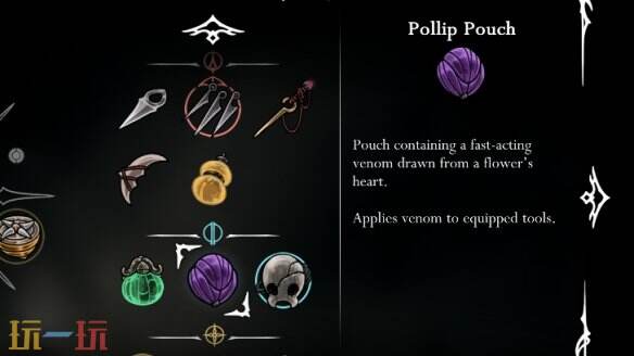 集齐 6 枚花芯果实后,返回甲木林向灰根提交任务,即可获得花芯袋。这是一枚装有花心速效毒液的囊袋,核心效果为给装备的工具淬毒,附加持续中毒伤害,大幅提升后续战斗的输出能力。