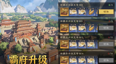 另外还有霸府升级奖励,根据霸府等级领取对应资源,也就是所谓的礼包,所以大家要争取每天都做完任务或者其他的活动,就可以快速提升霸府等级了。另外还有民生排名活动礼包,只要大家在排行榜中获取更高的名次之后,就可以开礼包并获得顶级称号【万景敬仰】、名帖背景【竹海云庐】等。