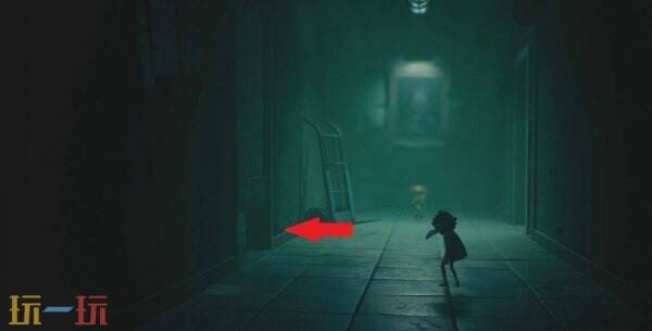 爬上图书馆梯子逃离老奶奶后,别向右走,向左走能找到玩偶01。
