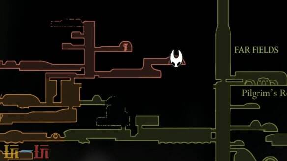 进入远野之后继续往右走,到达带有上升气流的垂直房间时,先进入右侧小房间找到出售远野地图的地图商人沙克拉。地图位置正上方有长椅和钟道。